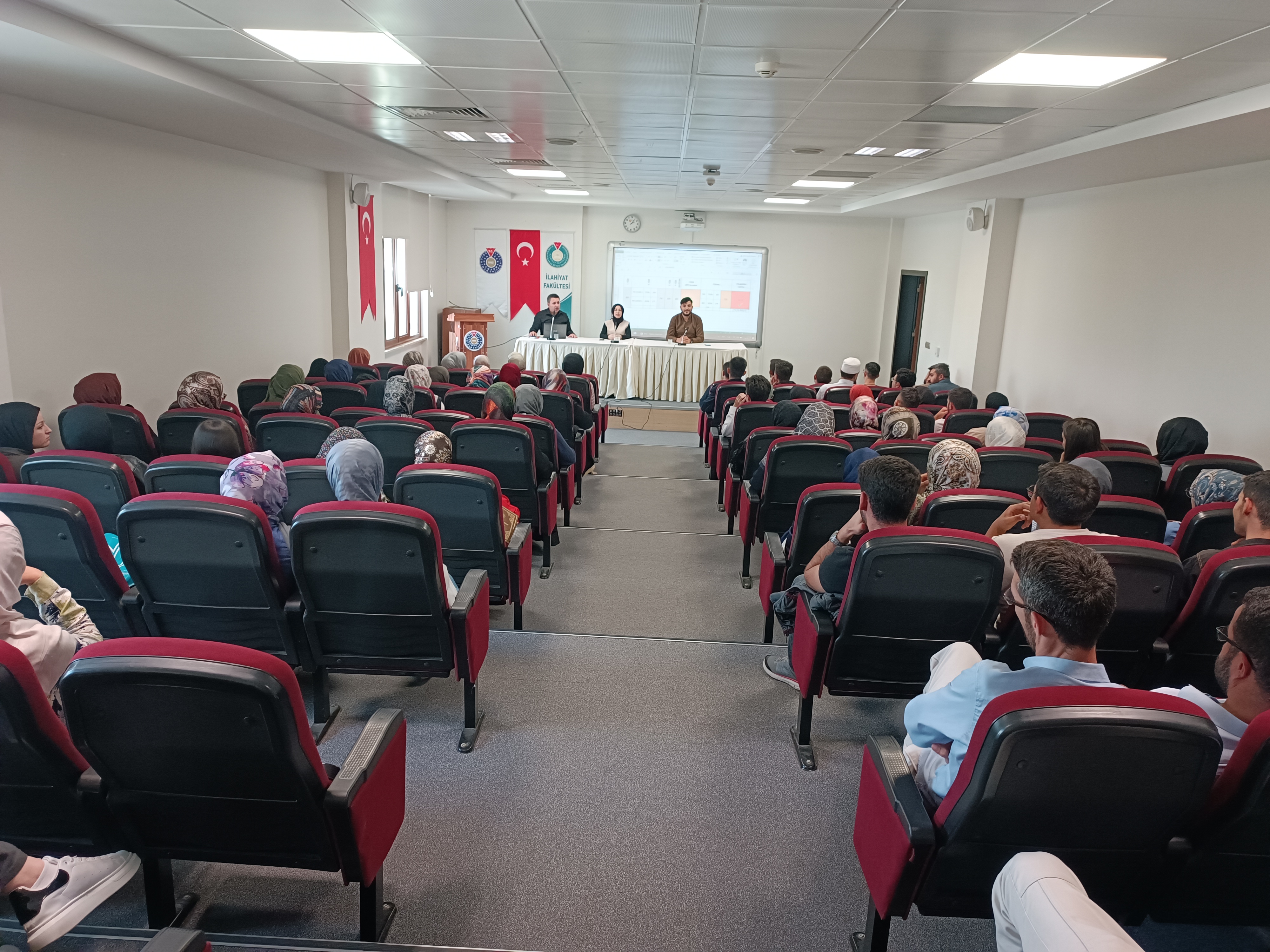 Fakültemize bu yıl kaydolan öğrencilerimizi bilgilendirmek ve onlara motivasyon sağlamak üzere, fakültemizden mezun olup fakültemize hizmet etmeye devam eden Dekan Yardımcımız Dr. Öğr. Üyesi Murat YİĞİT, Arş. Gör. Merve TOZ ve Arş. Gör. Sinan ÇELİK tarafından oryantasyon programı düzenlendi.
