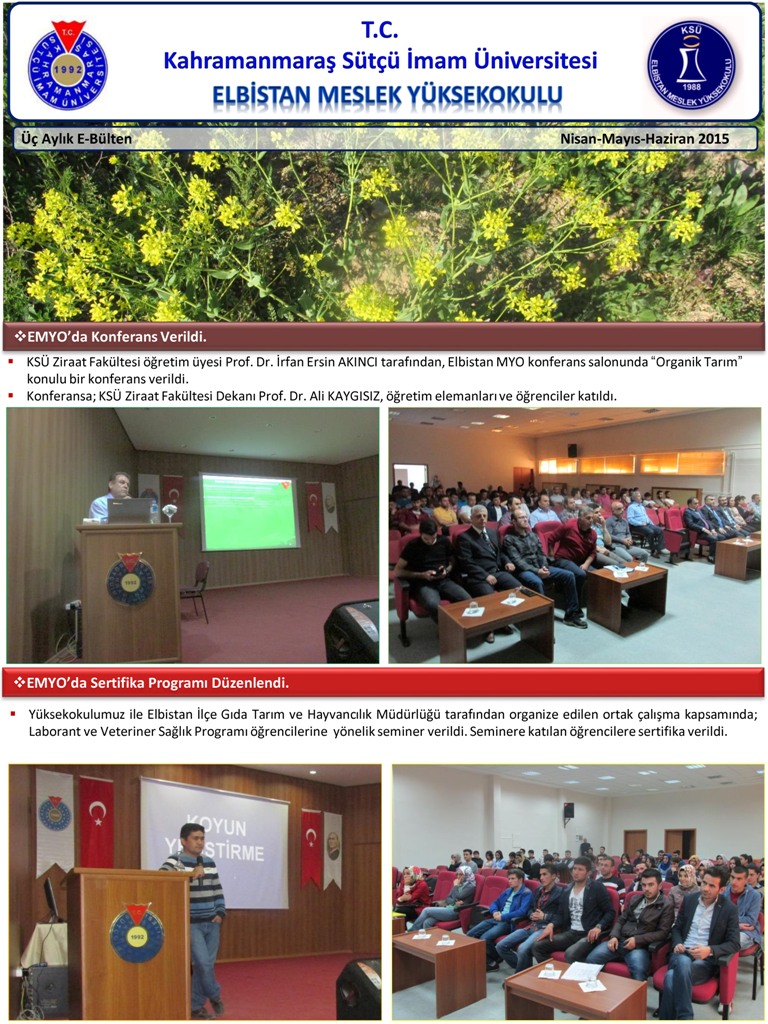 Elbistan Meslek Yüksekokulu Nisan-Mayıs-Haziran 2015 E-Bülten