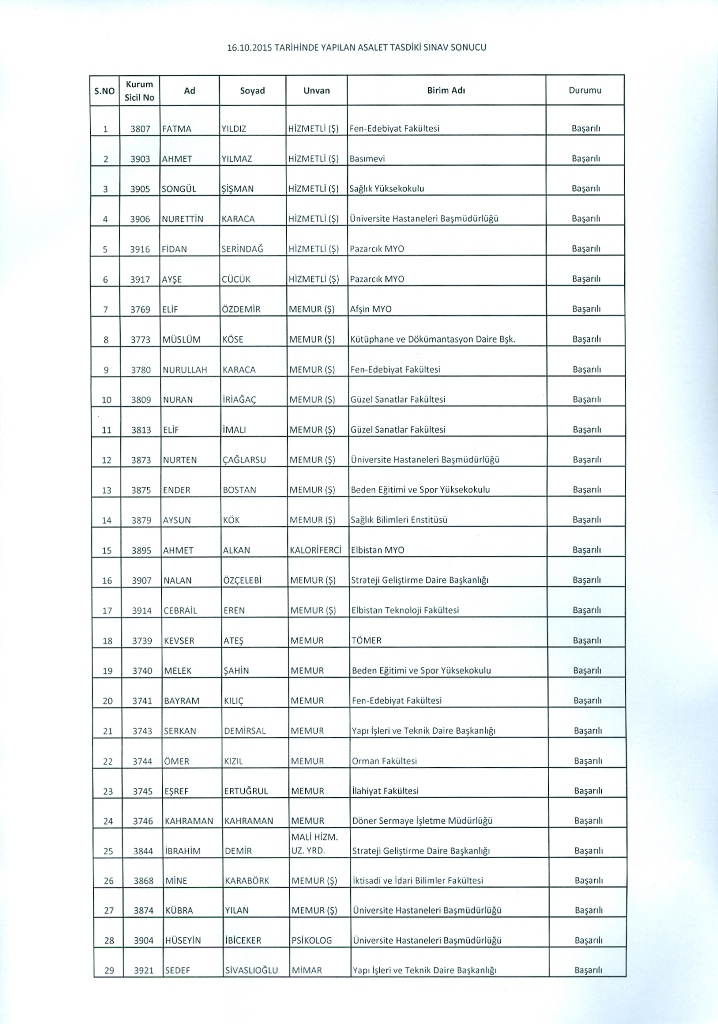 2015 Asalet Tasdiki Sınav Sonuçları