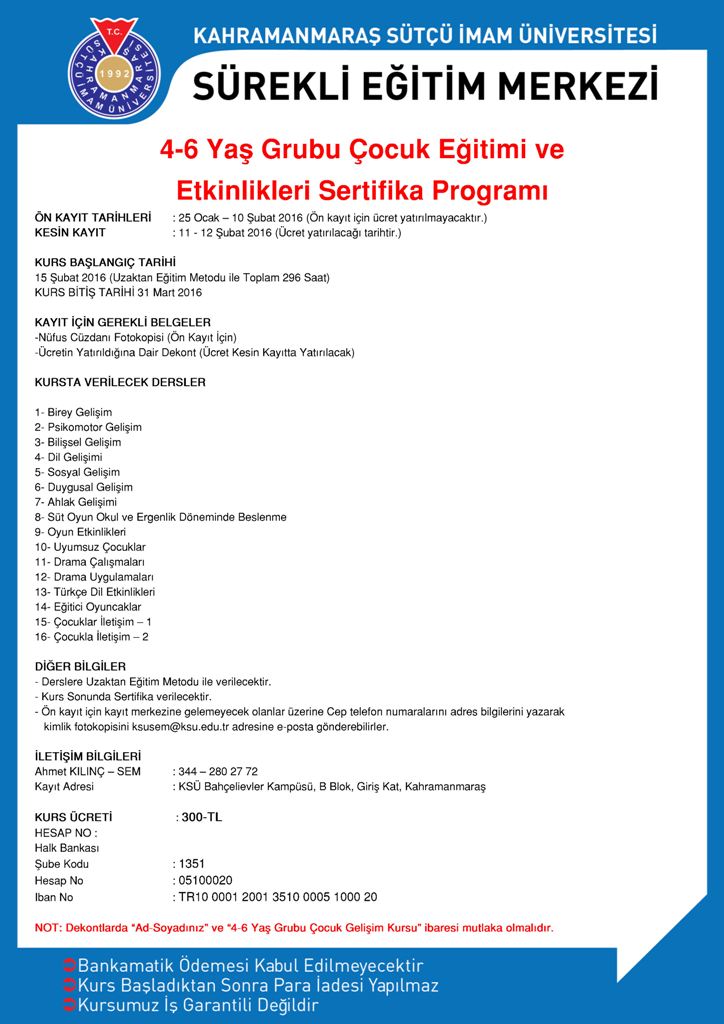 SEM 4-6 Yaş Grubu Çocuk Eğitimi ve Etkinlikleri Sertifika Programı
