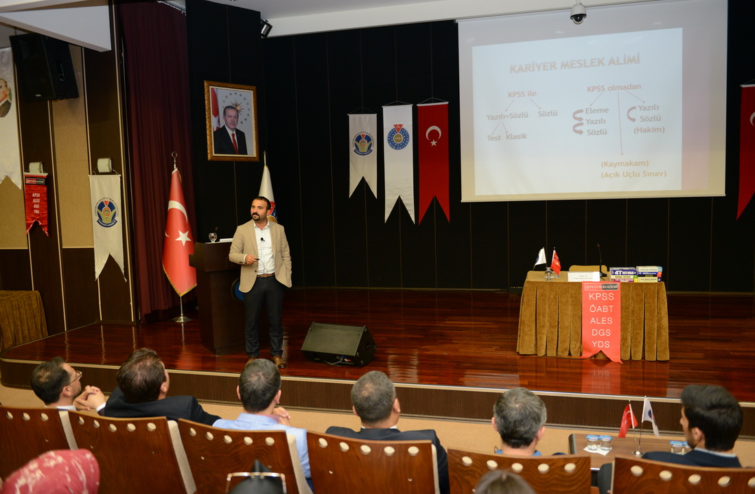 Sınavlara hazırlıkta doğru kaynak kullanımının önemine değinen Bayraktar, KPSS’de uygulanan puan türleri ve sınav sorularının konulara göre dağılımına ilişkin katılımcıları bilgilendirdi.