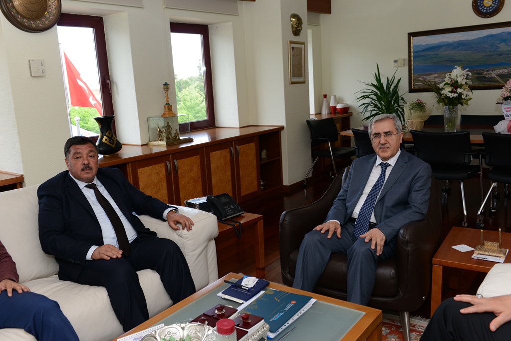 Ekinözü Belediye Başkanı Nursi Çeleğen, Adalet ve Kalkınma Partisi Ekinözü İlçe Başkanı Bilal Eker ile birlikte Kahramanmaraş Sütçü İmam Üniversitesi (KSÜ) Rektörü Prof. Dr. Niyazi Can’ı ziyaret etti.