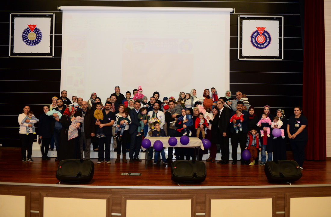 KSÜ Tıp Fakültesi Hastanesi Konferans Salonunda gerçekleştirilen etkinliğe Üniversitemiz Rektörü Prof. Dr. Niyazi Can, Tıp Fakültesi Dekanı Prof. Dr. Kamile Gül, Tıp Fakültesi Hastanesi Başhekimi Doç. Dr. Ökkeş Bilal, hastane çalışanları ile Yenidoğan Yoğunbakım Ünitesinde tedavi görerek yaşama tutunan prematüre bebekler ve aileleri katıldı.