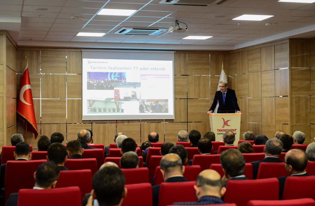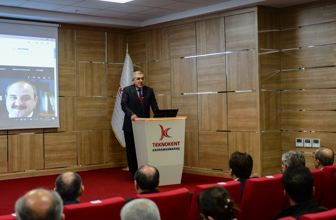 KSÜ Mühendislik ve Mimarlık Fakültesi Dekanı ve Teknokent Genel Müdürü Prof. Dr. Mahit Güneş de Teknokent’in mevcut durumuna ilişkin bilgilendirme sunumu yaptı. Kahramanmaraş Teknokent’te 44 firmanın faaliyet gösterdiğini belirten Genel Müdür Güneş, yürütülen projeler, yapılan yenilikler, firma satış ve ihracat gelirleri hakkında bilgiler verdi.