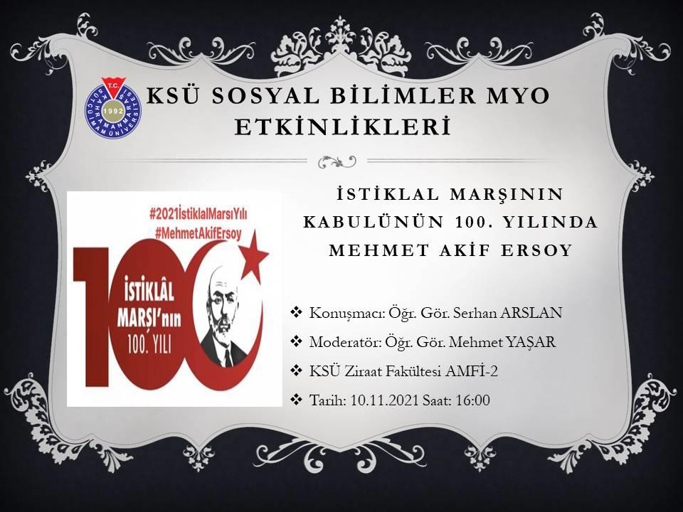 Sosyal Bilimler MYO "İstiklal Marşının Kabulünün 100. Yılında Mehmet Akif Ersoy"
