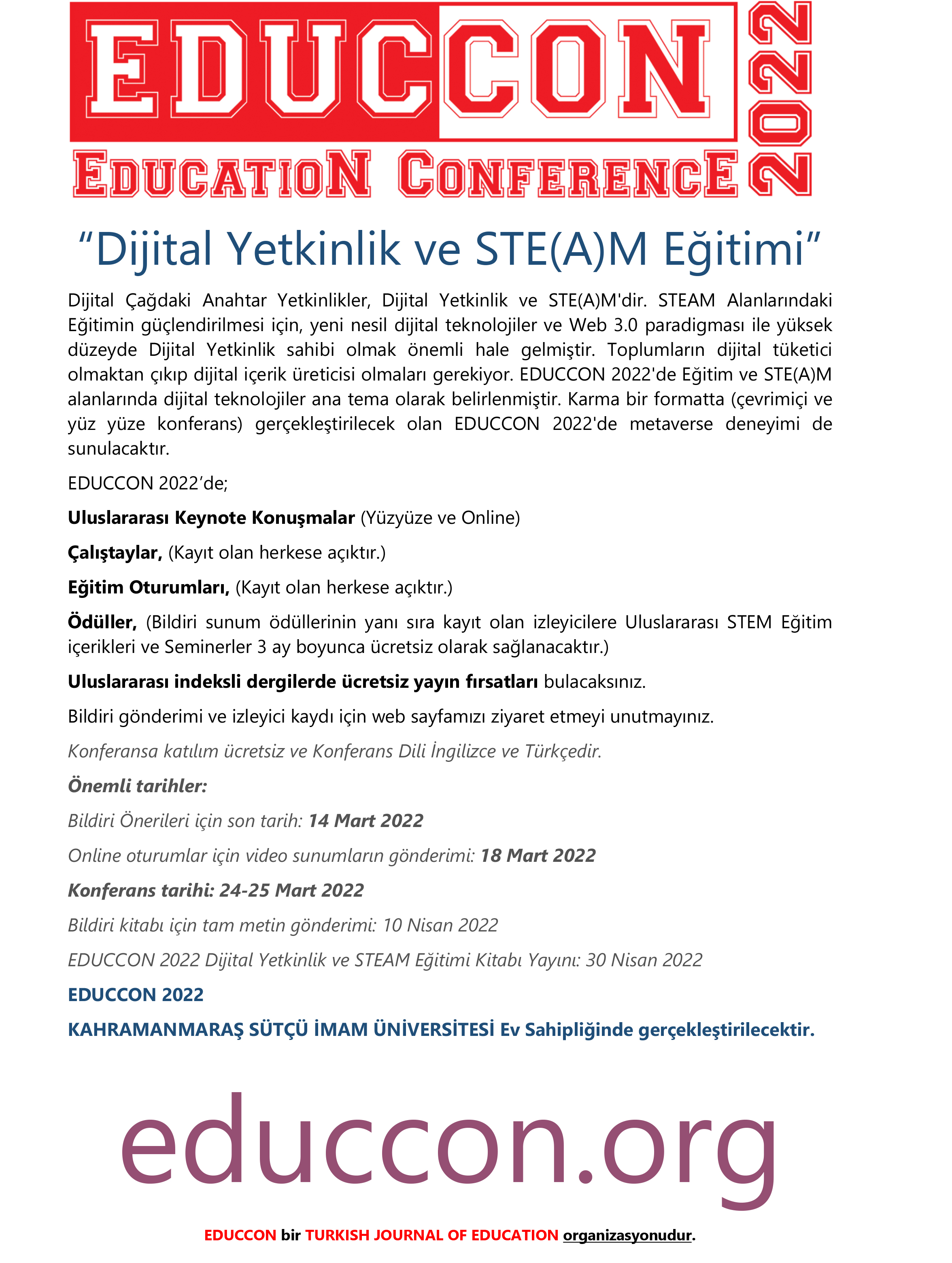 Uluslararası Eğitim Konferansı- EDUCCON 2022 Education Conference