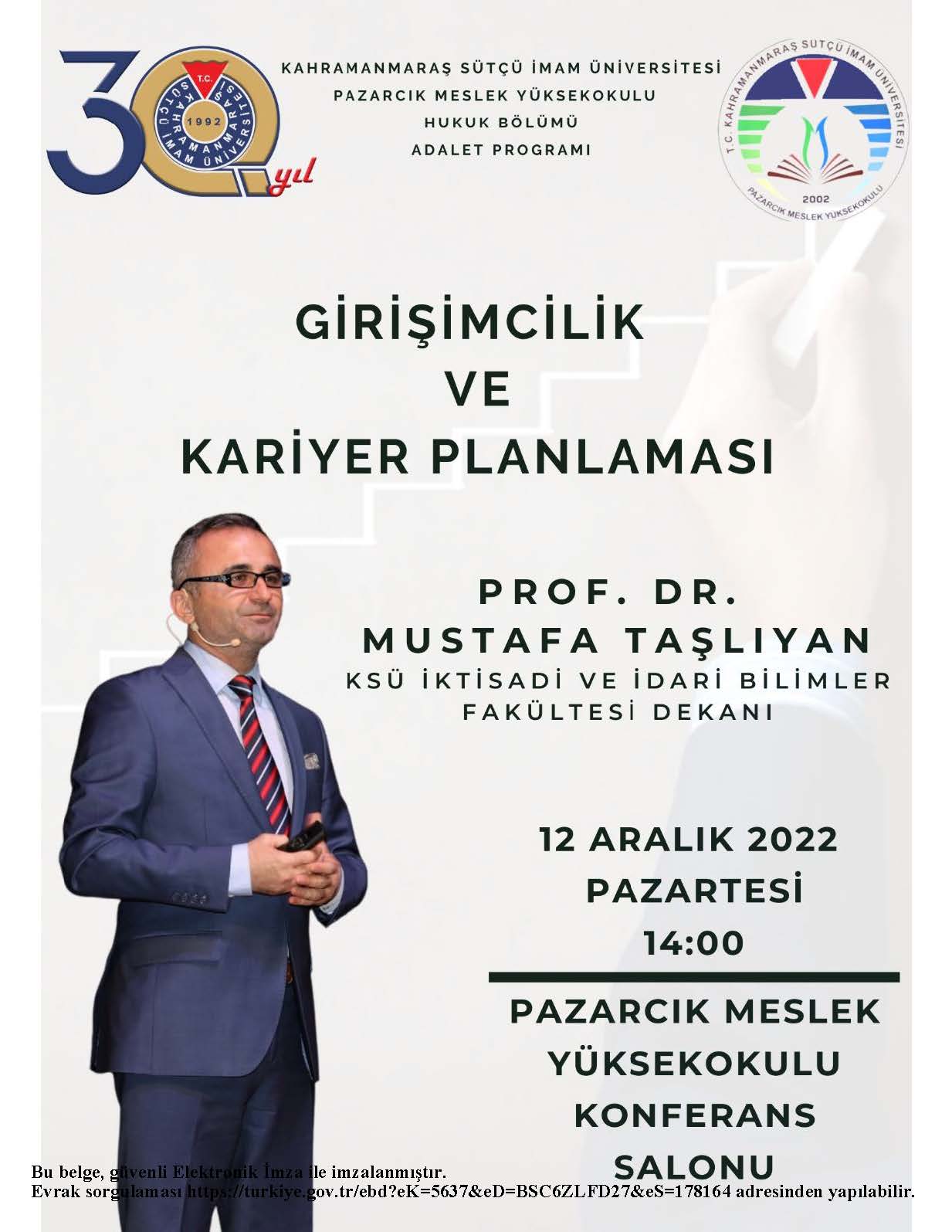 Pazarcık Meslek Yüksekokulu Hukuk Bölümü Adalet Programı: Girişimcilik ve Kariyer Planlaması