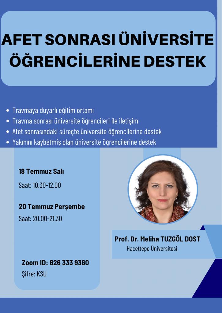Öğretim Elemanlarına ve İdari Personele Yönelik Üniversite Öğrencileri için Afet Sonrası Destek Seminerleri