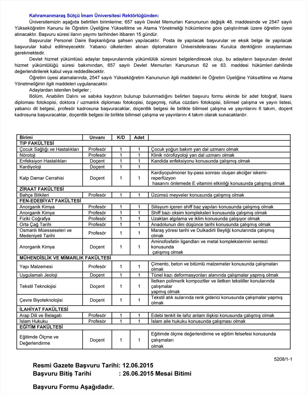 Öğretim Üyesi Alım İlanı