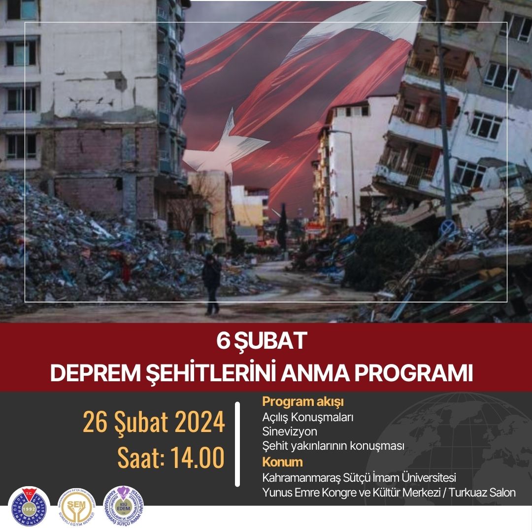 KSÜ, SEM ve EDEM’ den 6 Şubat Deprem Şehitlerini Anma Programı